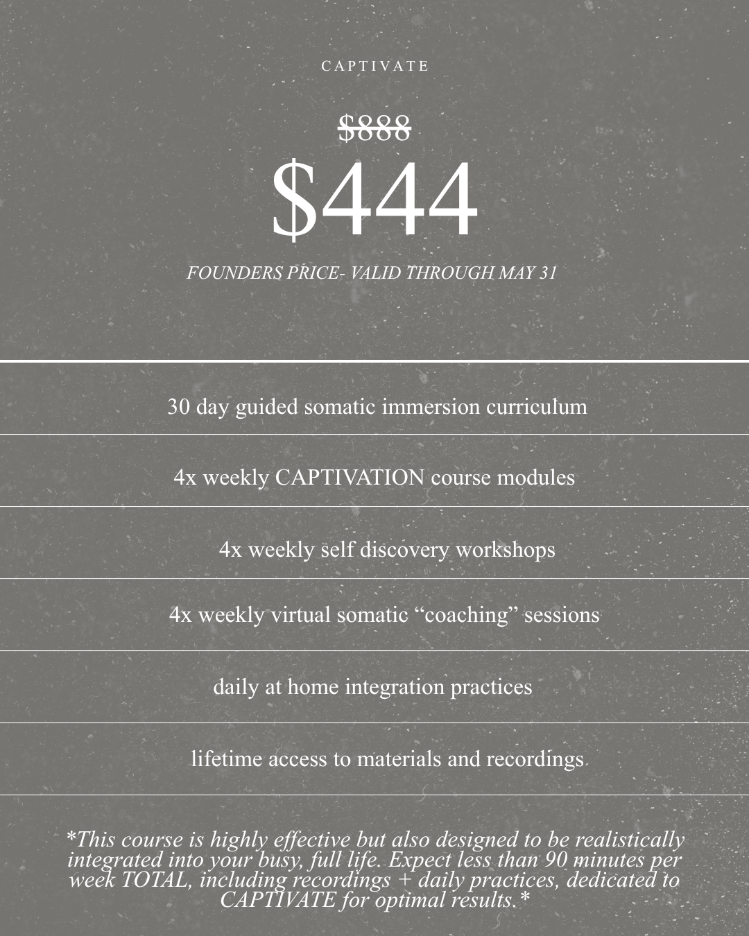 CAPTIVATE is a transformative, somatic, re-wiring journey designed to